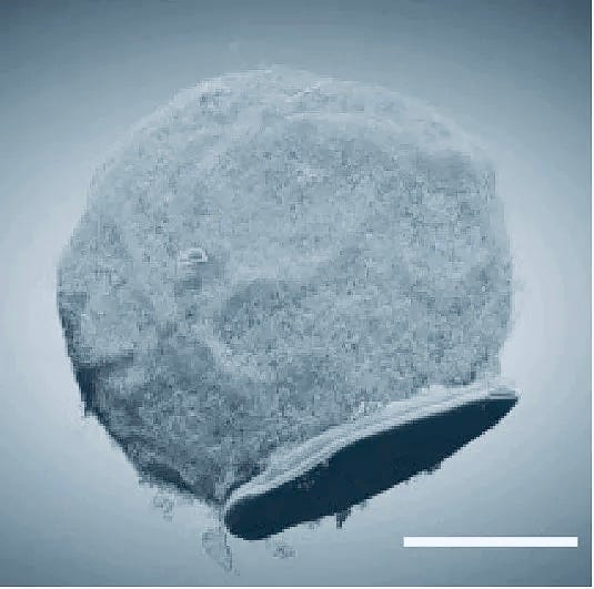 A monocyte with a nanochip attached to it.